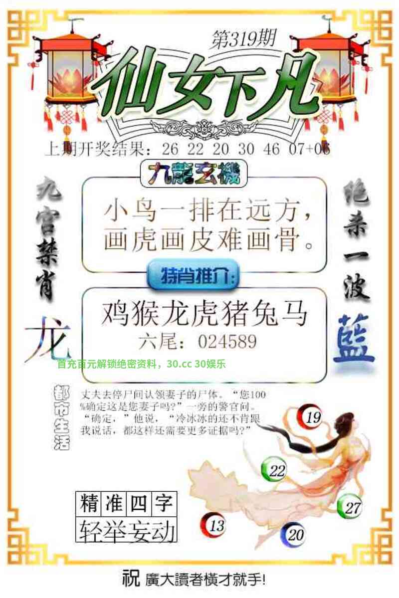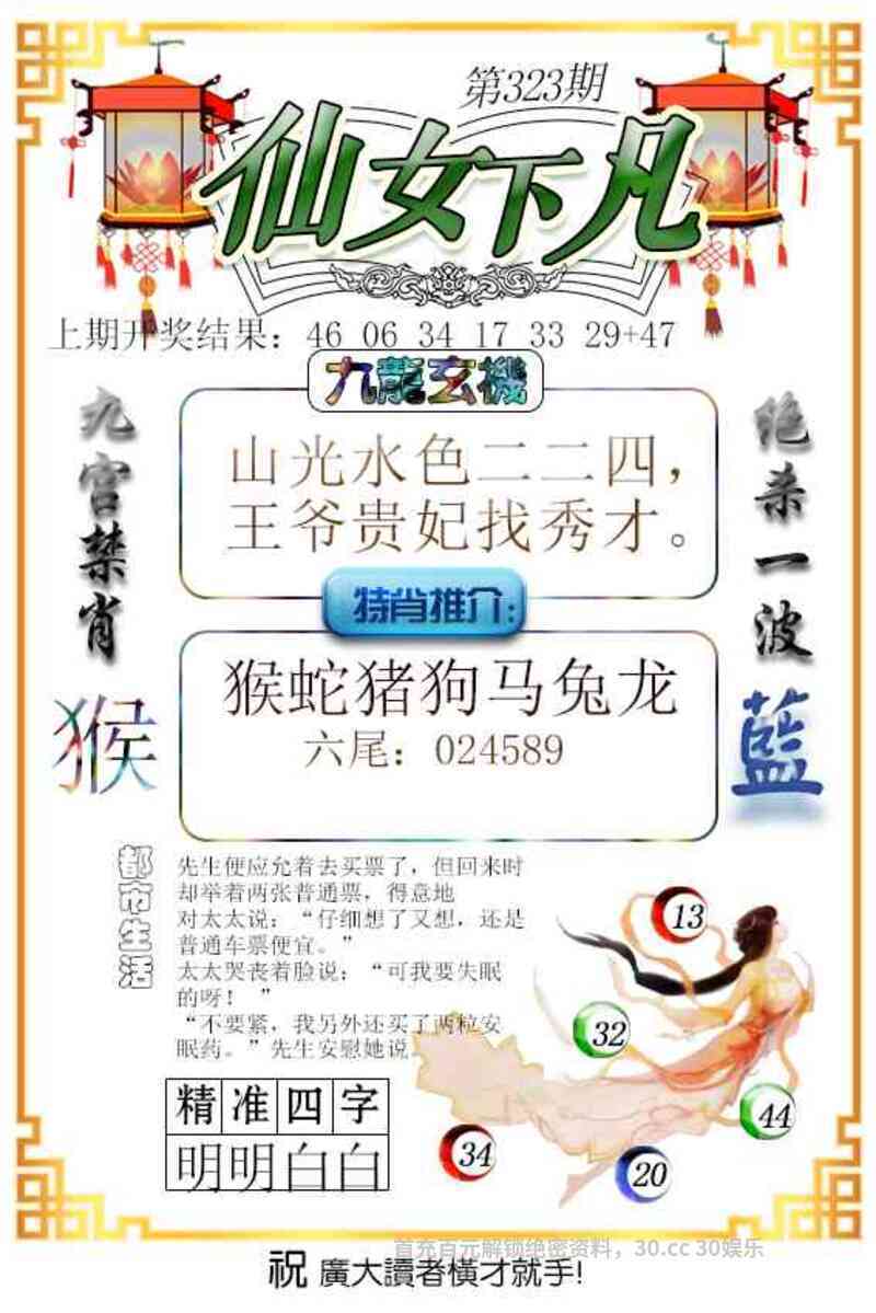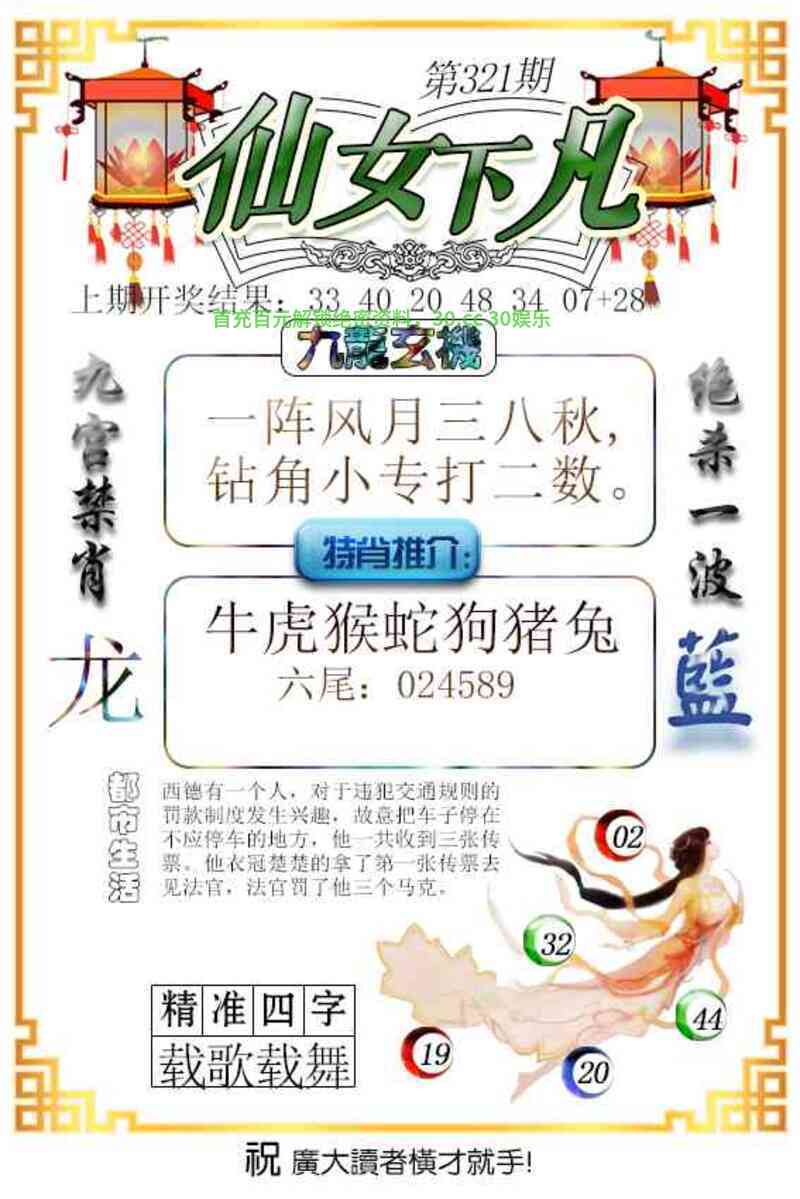 | 321期 | 七尾【2346789】 | 开:羊23准 |